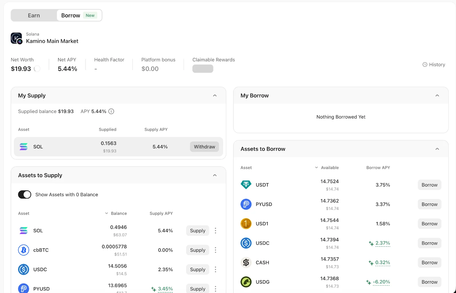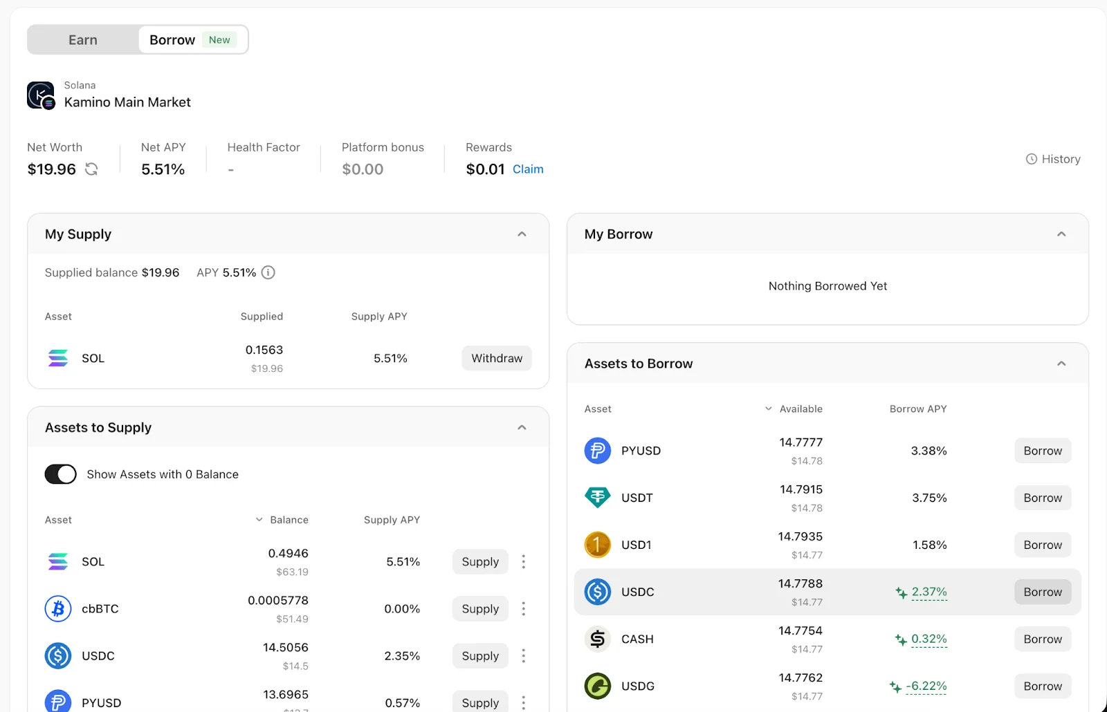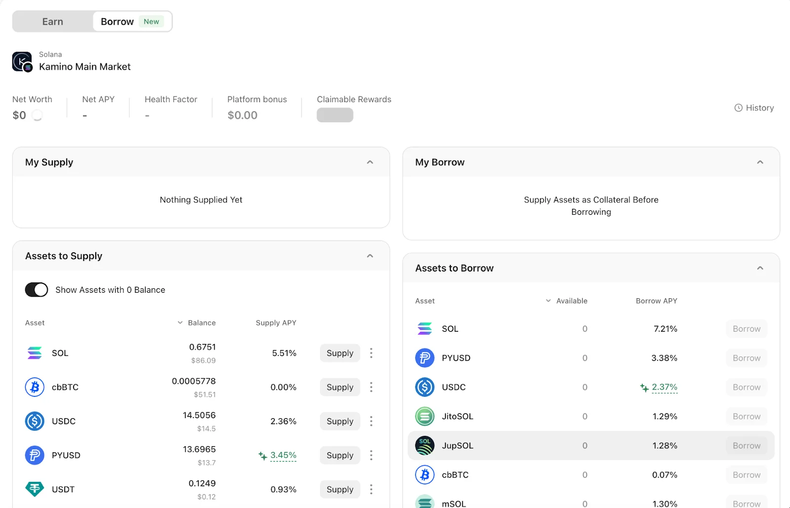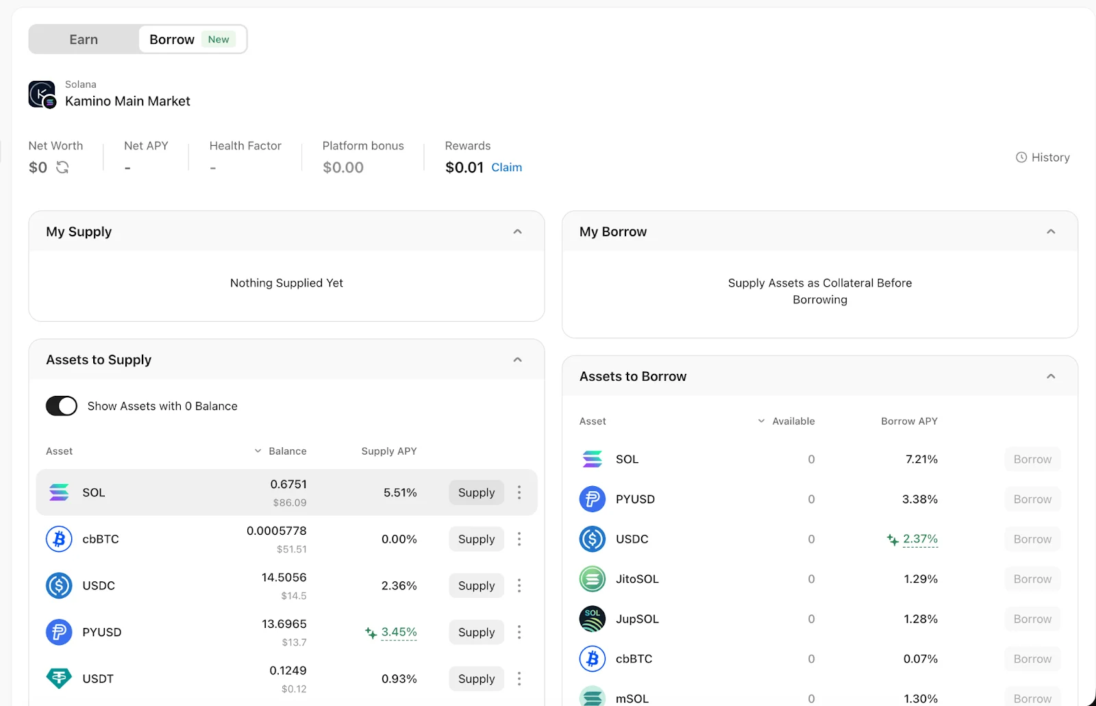 When supplying collateral for the first time, Kamino will charge a refundable setup fee to initialize your position. This fee will be returned in the final transaction after all supply positions in Kamino’s main market are fully closed.